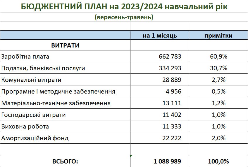 Бюджет ліцею