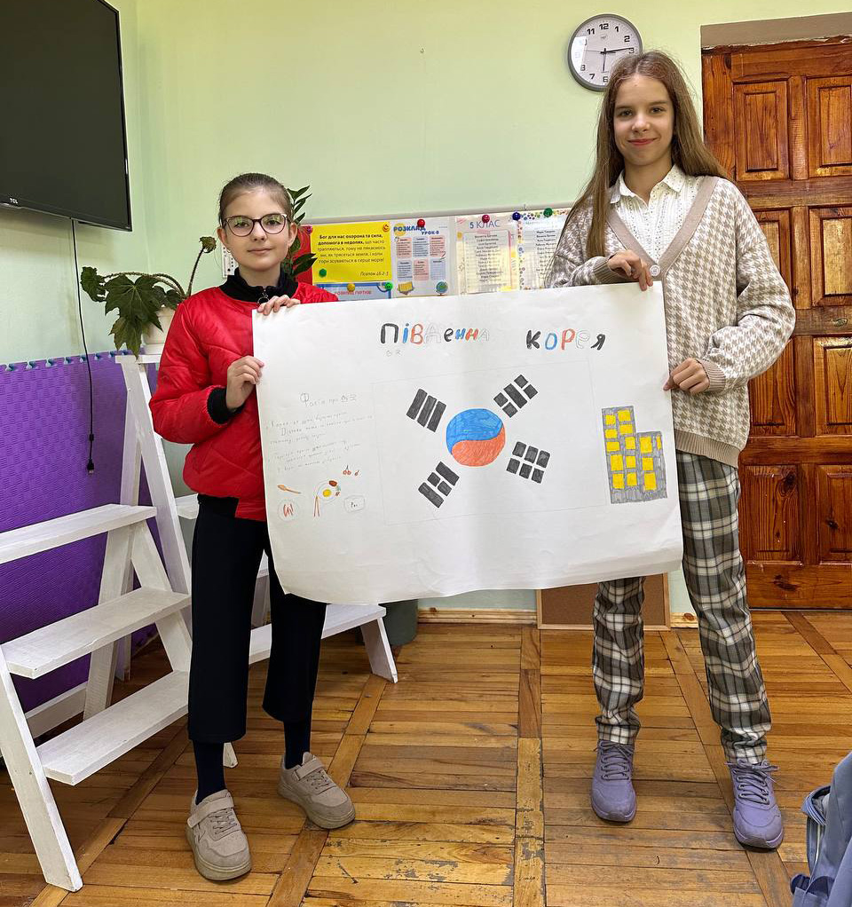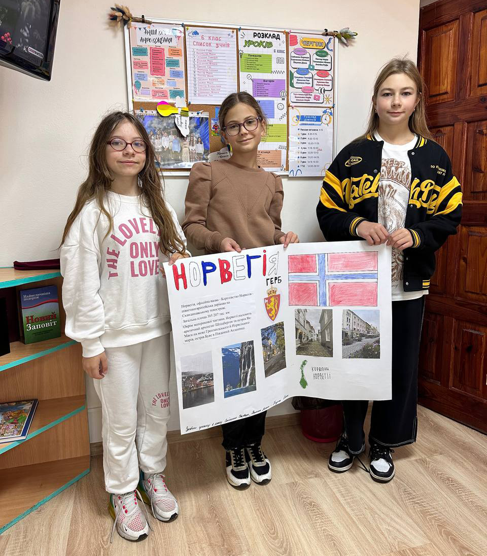 Для школярів середньої школи під час уроку з географії була проведена вікторина✍. Де діти пригадали та закріпили свої знання з географії. Також кожен клас підготував проєкт про відповідну країну. Розповіли про особливості цієї країни, її традиції, національний одяг та кухню. Після чого була проведена виставка проєктів школярів.